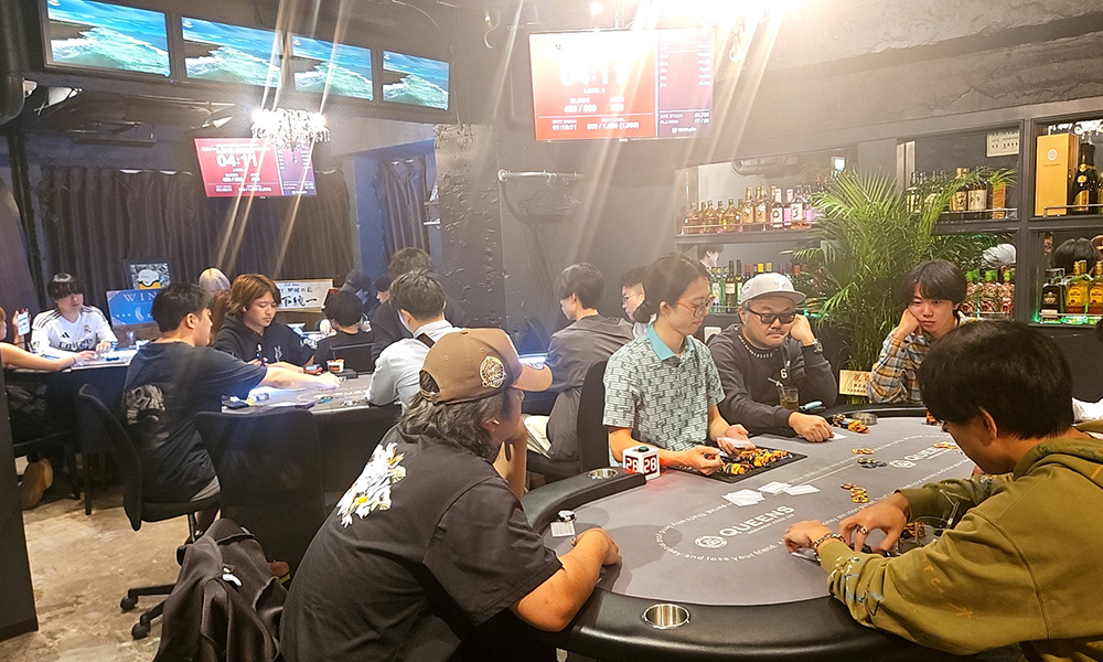 ポーカー初心者から、大型トーナメント入賞者まで楽しめる渋谷のポーカーバーです。長居しても飽きのこない落ち着いた雰囲気と、お洒落な店内で思う存分ポーカーをお楽しみください。 お客様同士がポーカーをプレイ!時には真剣に激しく打ち合い、駆け引きを楽しんだり、スキルを磨いたり、時には同じポーカーを楽しむ者として相手を称えたり。「QUEENS POKER」 はそんなポーカーに夢中になれる環境となっております。