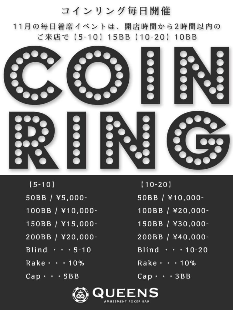 リングゲームは毎日開催!毎日、お早目の来店がお得な着席イベント開催です!